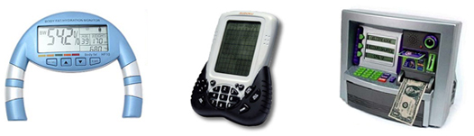 溫度計及日曆LCD IC , 卡路里計算器 , 脂肪測量器 , 計步器 , 銀行出納 , 計算機 , 手提遊戲機
